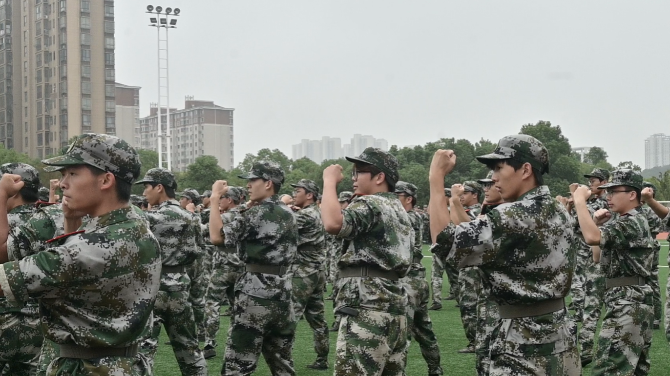 分列式进行曲响彻全场,教官分队持枪入场,眼神坚毅,步伐稳健,目光中透露出坚定与果敢。他们以豪迈的激情斗志、过硬的军事素养向全校师生展现昂扬奋发的精神风貌和青春风采。14个二级学院方阵紧随其后,身着戎装的新生喊着铿锵有力的口号,迈着整齐矫健的步伐,向全校师生展示军训成果,接受全场检阅。