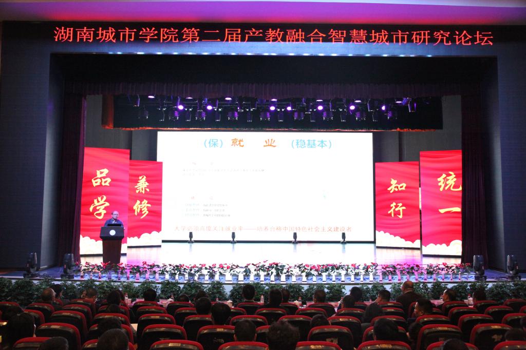 本网讯(通讯员 曾蓉 李诗琪 杨怡菡 周文娟)2020年11月8日下午,我校第二届产教融合暨智慧城市研究论坛在学校音乐厅举行。省教育厅科技处副处长张轶、校长李建奇出席论坛并讲话,浙江舟山群岛新区总规划师周建军、湖南科瑞特科技有限公司董事长张玉希、安徽省交通建设股份有限公司总裁彭小毛、华为独立顾问潘国瑞、广州朗国电子科技有限公司董事长詹明学、棕榈生态城镇科技(上海)有限公司董事长唐震、副校长雷存喜作主旨报告。论坛由副校长郑卫民主持。
